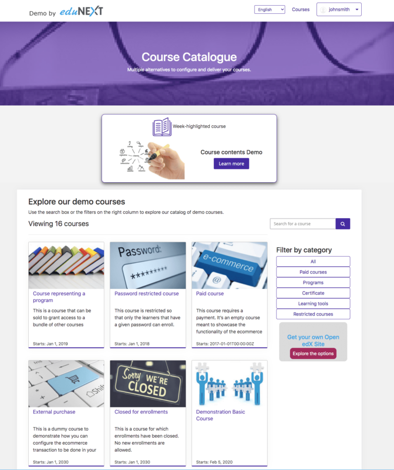The LMS (Learning Management System) is probably the most significant application in the Open edX platform. It is the place where learners find about the online learning initiative, sign up, browse and find available courses, enroll in them, consume the course contents, interact in the course, and ultimately obtain their course certificates.