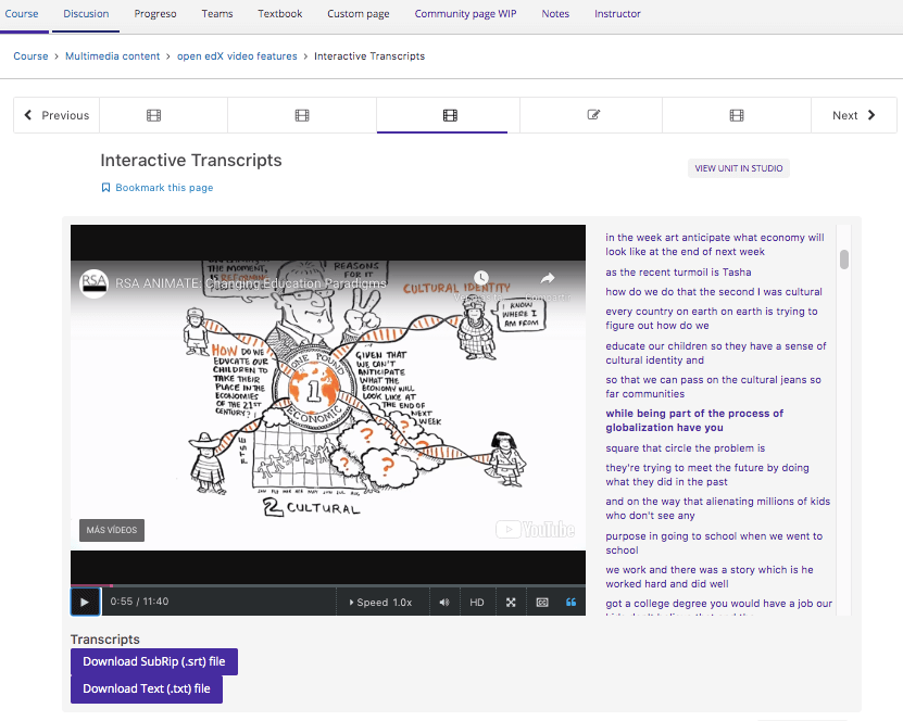 Once learners enters a particular subsections, they advance through the learning sequence in order. There is a navigation bar that will let them know the type of unit and whether it is already completed or not.